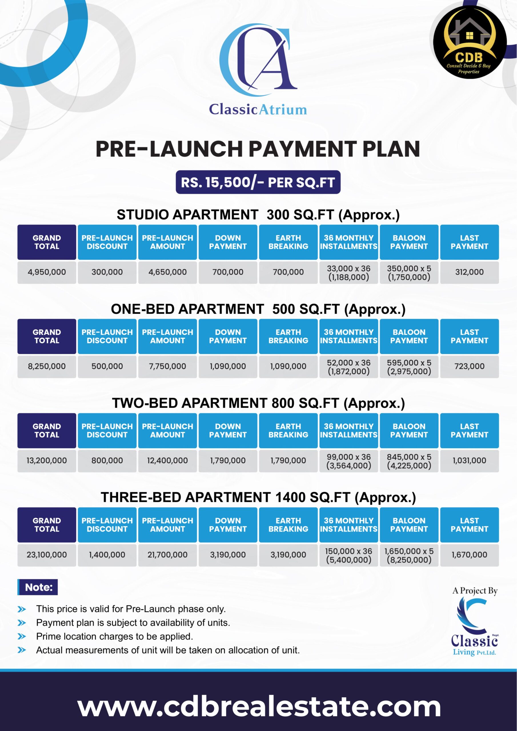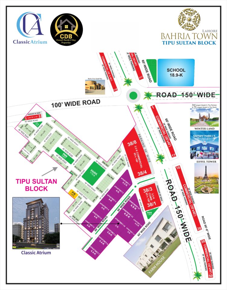 Classic Atrium is strategically located in Sector F of a well-developed and sought-after area in Lahore. This prime location ensures that residents have easy access to all the major attractions and conveniences that Bahria Town has to offer.